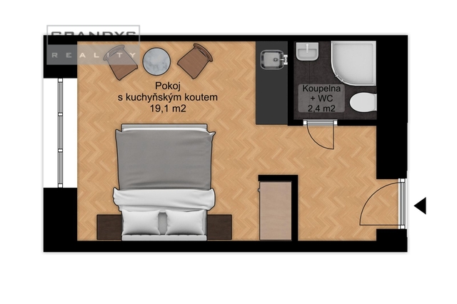 K pronájmu, Byt 1+kk, 32 m2 Radouňova
