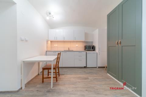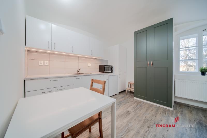Zprostředkuji Vám velmi klidné a bydlení v menším bytě 1+kk (garsonka) o velikosti cca 25 m2 ve zvýšeném patře bez výtahu, v historické části centra Hradce Králové, v ulici Dlouhá (nedaleko Klicperova Divadla). Byt se nachází v cihlovém domě ve dvorním traktu, a nabízí dostatek soukromí a výhled do Žižkových sadů. V letních měsících je zde možnost využití posezení v atriu mezi domy. Vzhledem k velikosti bytu je vhodný pro jednu osobu, nebo pár, a bez zvířat a nekuřáci. Vytápění a ohřev vody v bytě je zajištěno společným plynovým kotlem a bojlerem. Byt je po rekonstrukci, a nabízí se kompletně nově zařízený, jak je uvedeno na fotografiích. Měsíční nájem činí 13.500,- Kč + zálohy na energie (elektřina, topení, voda, komunální odpad) ve výši 2.500,- Kč pro 1 osobu. Připojení k internetu je možné přes O2 na vlastní náklady. Vratná kauce ve výši 20.000,- Kč. Poplatek za zprostředkování a rezervaci ve výši 13.000,- Kč. Parkování je možné za poplatek v nedalekých parkovacích domech (Gayerova kasárna nebo v parkovacím domě pod Krajským úřadem). V domě je k dispozici společná uzamčená kolárna. Byt je volný ihned. Pokud hledáte skvělou příležitost k bydlení v naprostém klidu a v centru Hradce Králové, nenechte si ujít tuto výjimečnou příležitost. Zavolejte mi a neváhejte si domluvit svůj termín prohlídky.