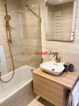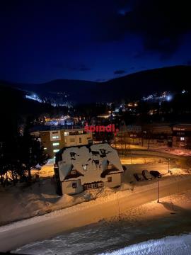 Reality Špindl Vám nabízí k pronájmu apartmá o dispozici 1+kk v širším centru Špindlerova Mlýna s krásným výhled na centrum a na sjezdovky ve Svatém Petru. Apartmá 1+kk se nachází ve 4. nadzemním podlaží novostavby (kolaudace 12/2021) hotelu Palace ve Špindlerově Mlýně. Toto podlaží je určena pro rezidenty. Ubytovací jednotka je nabízena k pronájmu plně vybavena: kuchyňská linka včetně nádobí a spotřebičů (dvouplotýnková sklokeramická varnádeska,vestavná lednice, myčka, kávovar, toaster, varná konvice), dvoulůžková postel, šatní skříň, křeslo, Smart Tv. Koupelna je vybavena vanou se sprchovou zástěnou, umyvadlem se skřínkou a toaletou. K apartmá náleží jedno garážové parkovací stání a komora pro úschovu lyží a dalšího sportovního vybavení v přízemí domu. Budova, ve které se apartmá nachází, je vzdálena 1,3km od skiareálu Medvědín a 1,5km od parkoviště Hromovka či autobusobého nádraží. Od domu je vynikající dostupnost do centra, kde si můžete vybrat z velkého množství restaurací. Jednotka je nabízena k dlouhodobému pronájmu - tzn. k pronájmu o délce minimálně jeden rok. Při podpisu nájemní smlouvy se hradí nájemné na první měsíc, vratná kauce ve výši dvou měsíčních nájmů, záloha na energie a provize RK. Apartmá není možné nabízet k dalšímu pronájmu. Pronájem možný od 1.8.2026. Preferujeme nájemce bez domácích mazlíčků. Pro bližší informace se na mne neváhejte obrátit.
