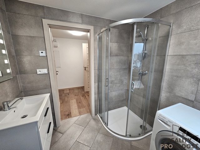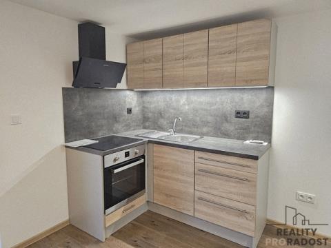 Nabízíme pronájem bytu 1 +kk ve městě Kyjov o celkové výměře 29 m2, balkón 1,5 m2. Byt se nachází ve 2 patře bez výtahu. Dispozice bytu: - vstupní chodba - koupelna se sprchovým koutem a s WC - pokoj s kuchyňským koutem a francouzskými dveřmi na balkón Byt je částečně vybavený ( kuchyňská linka s vestavěnými spotřebiči a v koupelně pračka), má elektrické podlahové vytápění a klimu. Byt je ihned volný, nachází se na ulici Komenského v těsné blízkosti centra města. Popatky: - nájem 11.000,- Kč + 1.950,- Kč energie - kauce 15.000,- Kč - odměna RK 15.000,- Kč Je možnost parkování jednoho auta na dvoře, měsíční poplatek je 500,- Kč.