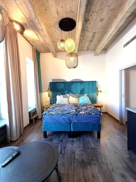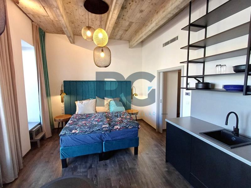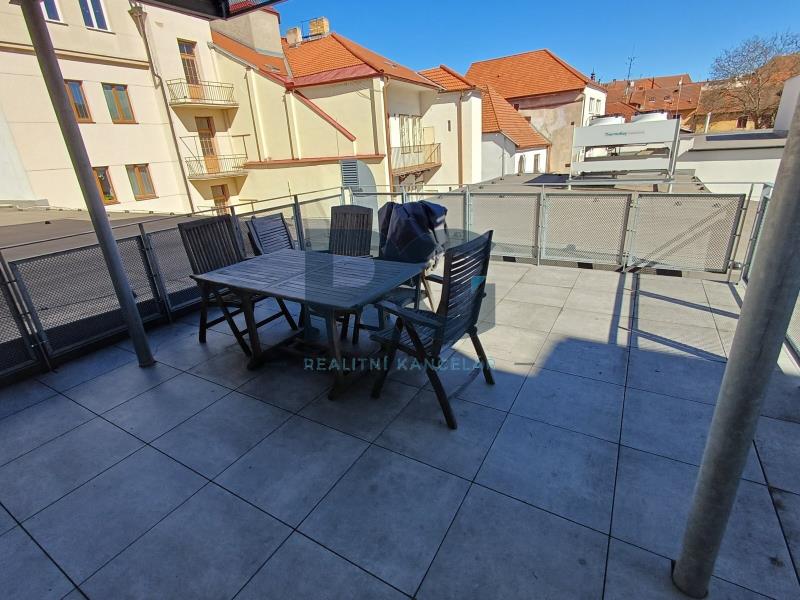 Nabízíme k pronájmu nadstandardní byt 1+kk o výměře 29 m2 s terasou o výměře 13 m2 , v jedinečném rezidenčním projektu v atraktivní lokalitě centra Písku na Velkém náměstí, v domě U Zlatého kříže. Funkcionalistický dům s bohatou historií prošel kompletní rekonstrukcí. Byt se nachází ve 3.NP a nabízí vzdušný obytný prostor spojený s kuchyňským koutem s linkou vybavenou spotřebiči (myčka, lednice s mrazákem, varná deska, trouba a digestoř) a s výstupem na terasu, situovanou do klidného vnitrobloku, s výhledem na Děkanský kostel. Koupelna je společná s toaletou a vybavená sprchovým koutem, umyvadlem a pračkou. V předsíní bytu je umístěna šatní skříň. Byt se pronajímá zařízený. K bytu náleží sklepní kóje v suterénu domu o výměře 2 m2. V budově je výtah a zabezpečený vstup do domu. Jedná se o skutečně exkluzivní bydlení v centru Písku. Veškerá občanská a dopravní vybavenost v bezprostřední blízkosti.