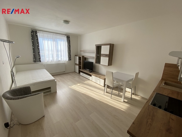 Nabízíme k pronájmu pro jednu osobu zařízený slunný byt 1+kk s garážovým parkovacím stáním v ulici Technická v Plzni na Borech nedaleko Západočeské univerzity. Byt o celkové ploše 28,8 m2 se nachází v 5.NP cihlového domu. Byt je kompletně zařízen a určen k bydlení pouze pro jednu pracující osobu. Je vybavený kuchyňskou linkou se spotřebiči (lednice, trouba, varná deska, digestoř, granitový dřez), jídelním stolem se dvěma židlemi, postelí, křeslem, lampou, obývací stěnou a TV. Dále je k dispozici pračka v koupelně a úložné prostory v předsíni. Okno bytu je orientováno na západní stranu. Byt je vytápěn dálkově, internet je možné řešit přes Pilsfree nebo O2. K bytu náleží garážové parkovací stání pro osobní automobil v suterénu domu a prostorná sklepní kóje. Měsíční nájemné činí včetně parkování 13.000 Kč, kauce ve výši 1,5 násobku nájemného (19.500Kč), zálohy za služby a el. energii činí 2.200 Kč /os. Provize je ve výši 1 nájemného + DPH (15.730 Kč). V blízkosti domu je kompletní občanská vybavenost, MHD, OC Borská Pole, restaurace, kavárny. Preferováni budou zájemci bez domácích mazlíčků a nekuřáci. V současné době je byt pronajatý, volný bude dle dohody. Pro sjednání prohlídky využijte uvedené kontakty.