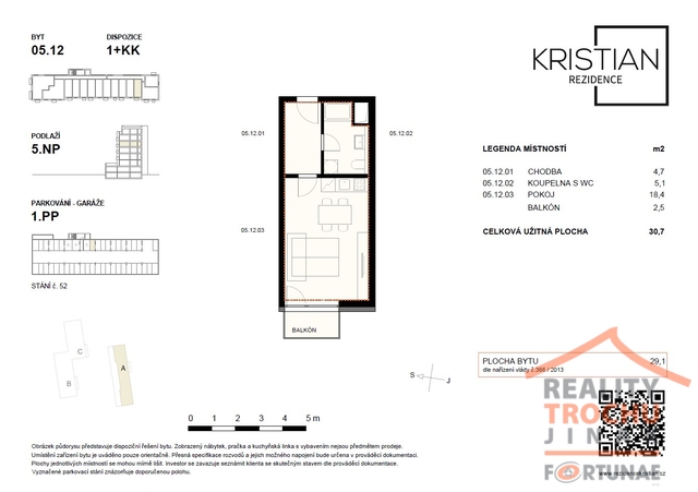 Nabízíme k pronájmu nový byt v Rezidenci Kristian o dispozici 1+kk, ve vyhledávané lokalitě v Hradci Králové – Moravské Předměstí. Byt se nachází v 5. patře zděného domu s výtahem. Celková plocha bytu činí 30,7 m² (včetně balkonu 2,5 m²). Dispozice: vstupní chodba, obývací pokoj s kuchyňským koutem, koupelna (sprchový kout) s WC, balkón. Vybavení: kuchyňská linka se spotřebiči (dvouplotýnková indukční varná deska, el. trouba, digestoř). Vytápění: ústřední dálkové. K bytu náleží 1x kryté parkovací stání v domě. V případě zájmu o prohlídku nás neváhejte kontaktovat. Volné od 1.5.2026