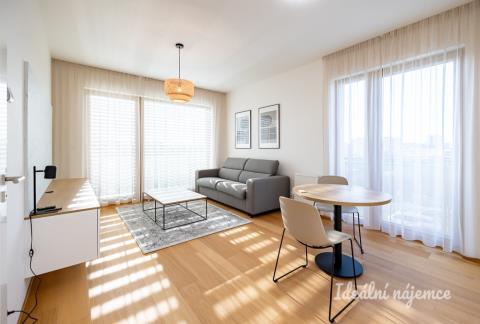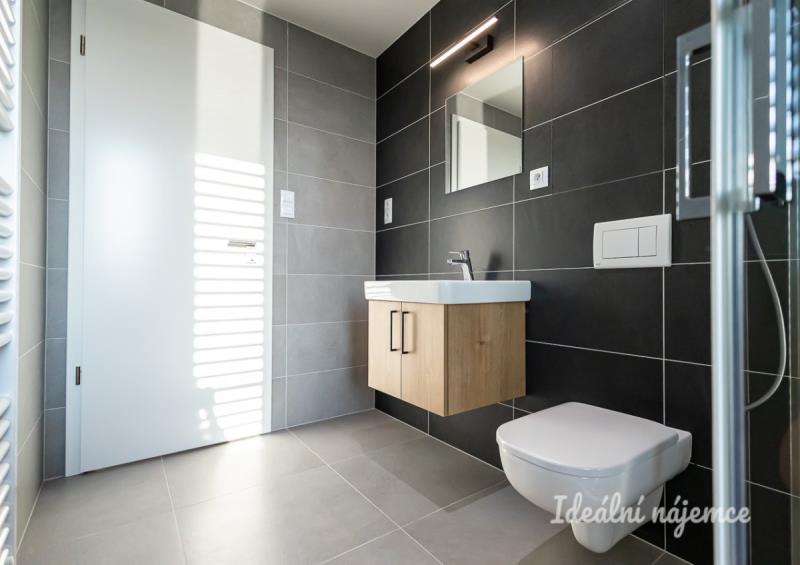 K dlouhodobému podnájmu Vám nabízíme moderně zařízený byt o dispozici 1kk, 30m2 plus samostatná sklepní kóje nadstandartní velikosti. Byt se nachází v 1. patře novostavby cihlového domu s výtahem. Nabízí se kompletně zařízený tak, jak vidíte na fotografií. Koupelna je vybavena sprchovým koutem, umyvadlem a bude dovybavena pračkou. Kompletně zařízený obývací pokoj s rozkládacím gaučem, který je možno přeměnit v plnohodnotnou postel. Kuchyně je zařízena všemi spotřebiči - lednice, myčka, varná deska, trouba a digestoř. Z obývacího pokoje je také vstup na velký balkón. Jednou z výhod bytu je, že všechna okna mají předokenní žaluzie. Byt se nachází ve velmi klidné lokalitě s veškerou občanskou vybaveností na dosah. Obchod Penny, kde je také autobusová zastávka je od domu necelých 5 minut chůze. Byt je k dispozici ihned k dlouhodobému bydlení. Zálohové platby už obsahují zálohy na elektřinu a pojištění domácnosti.