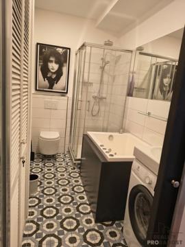 Koupelna je vybavena jacuzzi vanou, sprchovým koutem a pračkou, což zajišťuje komfort a pohodlí. Byt má vlastní vytápění a ohřev vody, takže o komfortní bydlení je dobře postaráno. V ceně jsou zahrnuty veškeré poplatky – elektřina, voda, topení, výtah, vysokorychlostní internet a další služby.