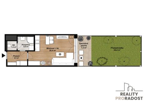 Nabízím k pronájmu úplně nový byt 1+kk (atelier) o velikosti 32,5 m² se soukromou zahrádkou 24 m² v moderní rezidenční čtvrti Tesla Hloubětín v Praze 9. Byt se nachází v 1. patře novostavby a součástí je také vlastní zděný sklep. Velkým benefitem této nabídky je právě zahrádka, která z malého městského bytu vytváří velmi příjemné místo pro bydlení – možnost posedět venku, mít vlastní zeleň nebo malou městskou zahradu je v Praze skutečně výjimečná.