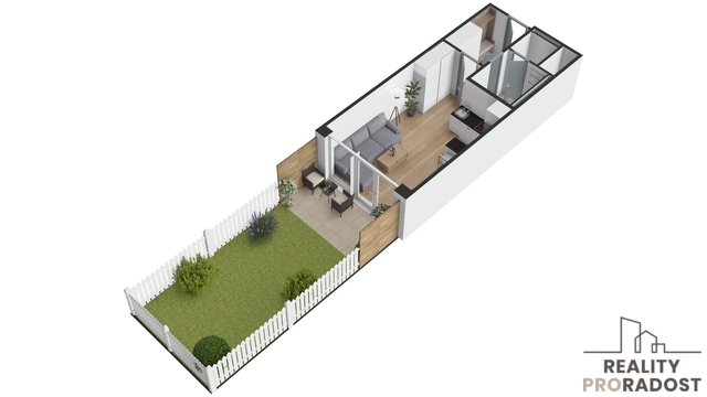 Byt je ideální pro jednu osobu nebo pár, kteří hledají moderní bydlení v nové čtvrti s výbornou dostupností do centra a zároveň ocení možnost vlastní zahrádky.