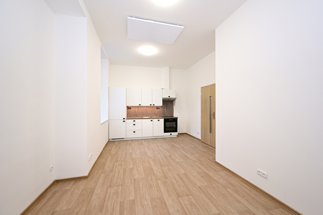 Nabízím k dlouhodobému pronájmu nově a kompletně zrekonstruovaný byt 1+kk o výměře cca 32 m², umístěný v přízemí historického cihlového domu v ulici Komunardů, v oblíbené části Prahy 7 – Holešovice. Dispozice bytu zahrnuje předsíň (6 m²), hlavní obytnou místnost s kuchyňským koutem (22 m²) a koupelnu se sprchovým koutem a toaletou (4 m², bez pračky). Kuchyňská linka je vybavena vestavěnou lednicí s mrazákem, el. troubou, varnou deskou, myčkou a digestoří. Ohřev vody zajišťuje el. bojler, vytápění pak moderními stropními infrapanely, které poskytují příjemné a rovnoměrné teplo. Byt je orientován do tichého vnitrobloku, což zajišťuje klidné bydlení i v živé městské části. Díky umístění v přízemí je výhled z oken částečně omezený, jak je patrné z fotografií, ale byt je světlý a rozhodně netrpí nedostatkem denního světla. Velkou výhodou je samotná lokalita – přímo před domem se nachází tramvajová zastávka Dělnická, odkud se dostanete během pár minut do centra. V bezprostředním okolí najdete oblíbenou kavárnu Vnitroblock, mnoho restaurací, bister, obchodů a kulturních podniků, díky čemuž zde auto vůbec nepotřebujete. Měsíční nájemné činí 18 000 Kč. K nájmu se dále hradí zálohové poplatky za vodné, stočné a domovní služby ve výši 600 Kč pro jednu osobu, nebo 1 200 Kč pro dvě osoby. Elektřina se převádí na nájemce, předpokládané měsíční náklady jsou cca 2 000 Kč. Vratná kauce ve výši jednoho měsíčního nájmu. Provize RK. Internet si nájemce zajišťuje sám, v domě je možnost připojení k síti O2. Byt je k dispozici od 1. dubna. Ideální bydlení pro jednotlivce nebo pár, hledající klidné místo v atraktivní lokalitě s perfektním spojením a službami v okolí. V případě zájmu o prohlídku mě neváhejte kontaktovat.