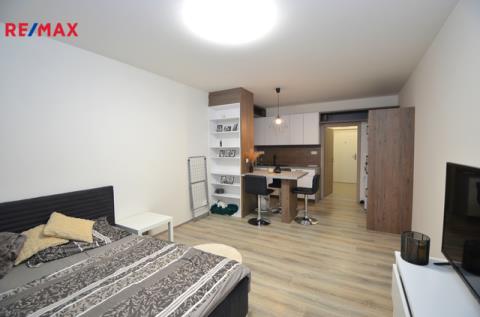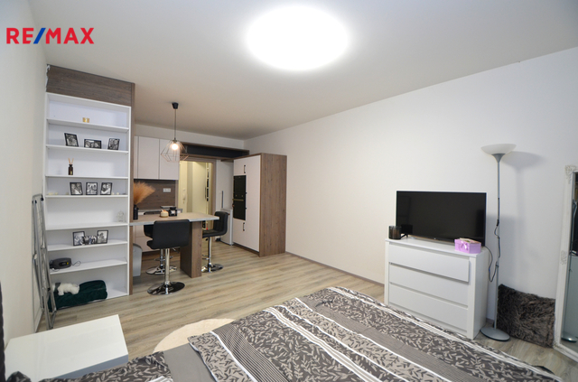 Nabízíme Vám k pronájmu příjemný byt o dispozici 1+kk o výměře cca 33,8 m2 s komorou a vlastním venkovním parkovacím stáním. Byt se nachází v bytovém domě ve velmi žádané lokalitě na ulici Aloise Rašína v blízkosti nákupního centra Olomouc City. Tento byt se nachází v 3. nadzemním podlaží s výtahem z celkových 6 a skládá se z předsíně s velkorysým úložným prostorem, obývacího pokoje s kuchyňským koutem (kuchyňská linka s barovým pultem a vestavěným policovým regálem a vybavená indukční varnou deskou, elektrickou troubou, digestoří, myčkou a mikrovlnnou troubou) a koupelny se sprchovým koutem a toaletou. Byt se nabízí nevybavený. K dispozici je i komora o výměře cca 1,4m2 na patře. Vytápění a ohřev vody jsou zajišťovány dálkově. V ceně nájemného je možnost využívat vlastní venkovní parkovací stání před bytovým domem. Bytový dům se nachází v lokalitě s výbornou dopravní dostupností (dálnice, zastávky MHD) a také občanskou vybaveností (nákupní centrum, restaurace, základní škola, mateřská škola a další). Do výše nájemného není zahrnuto inkaso (cca 3.000,- Kč) včetně záloh na elektřinu. Vratná jistota je majitelem požadována ve výši dvou měsíčních nájmů, provize RK činí jeden měsíční nájem + DPH. Byt je připravený k nastěhování ihned. Pro více informací nebo sjednání prohlídky kontaktujte makléře této nabídky.
