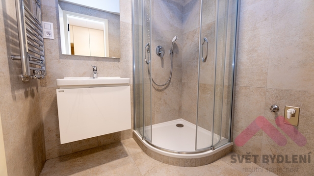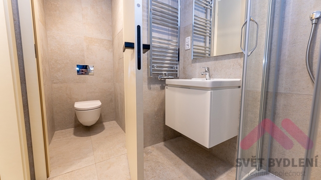 1+kk/T, 33m2, terasa, luxusní novostavba, P-3 Žižkov ul. Šrámkové Naše společnost si Vám dovoluje nabídnout luxusní byt, který se nachází v 3.patře s výtahem právě dokončené novostavby projektu Parková čtvrť, která je provedena ve vysokém standartu (vyhřívané podlahy, předokenní žaluzie, klimatizace, rekuperační jednotka, zabezpečovací systém Jablotron). Byt o celkové užitné ploše 33m2 (26m2 byt + 7m2 terasa) je vybaven kuchyňskou linkou s vestavěnými spotřebiči zn. Electrolux (lednička, myčka, mikrovlnná trouba, indukční varná deska, horkovzdušná trouba) a vestavěné skříně v předsíni a dále kvalitní rozkládací sedací soupravou a pračkou se sušičkou. K bytu náleží sklepní kóje, která je umístěna v suterénu domu. Volné od 1.2! Nájem: 18.900Kč + 2.500Kč služby (vytápění, voda, výtah, úklid domu atd..) + elektřina (elektroměr se převádí na nájemce- spotřeba cca. 1.000Kč) Podmínky: Vratná kauce: 30.000Kč, Provize RK: 21.400Kč +21% DPH, Bez domácích zvířat, Volné od 1.2!