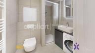 Kuchyňský kout je prakticky řešen a kompletně vybaven – k dispozici je varná deska, trouba, mikrovlnná trouba, myčka nádobí i lednice s mrazákem. Součástí vybavení bytu je také pračka. Koupelna je moderní, se sprchovým koutem, keramickými obklady a kvalitní sanitou renomovaných výrobců.