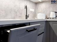 V interiéru na vás čeká plnohodnotné vybavení, takže si stačí přinést jen osobní věci. Obývací část disponuje pracovní plochou, šatními systémy a především praktickou rozkládací postelí, která přes den šetří místo a v noci zajistí komfortní spaní. Moderní kuchyně v elegantních šedých tónech s barovým pultem je osazena kvalitními spotřebiči a velkou nerezovou lednicí. Maximální komfort v každém ročním období pak zajišťuje instalovaná klimatizace.
