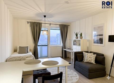 Hledáte bydlení, které má styl, duši a je naprosto bez starostí? Nabízím k podnájmu krásný, kompletně a vkusně zařízený byt 1+kk v 5. NP moderní novostavby na ulici Reissigova v brněnském Králově Poli. Tento byt byl navržen s důrazem na detail a maximální využití prostoru, což potvrzují i unikátní designová svítidla, která večer vytvářejí na stěnách jedinečnou hru světel a stínů.