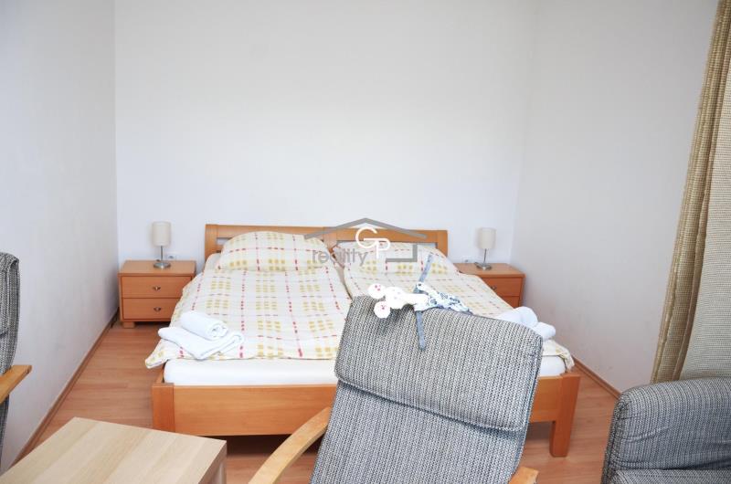Nabízíme k pronájmu světlý a útulný byt 1+kk s balkónem o celkové ploše cca 34 m2, situovaný v 1. patře zděného a zatepleného domu v atraktivní lokalitě Lipna nad Vltavou. Tato oblíbená rekreační oblast nabízí nejen krásnou přírodu, ale i kompletní občanskou vybavenost a široké možnosti sportovního i volnočasového vyžití. Český Krumlov je vzdálen přibližně 31 km. Byt je plně vybavený a připravený k okamžitému nastěhování (chybí pouze pračka). K dispozici je kuchyňská linka s elektrickým sporákem a lednicí, jídelní kout se stolem a čtyřmi židlemi, dostatek úložných prostor, dvě postele, rozkládací pohovka, dvě křesla, konferenční stolek a televize se satelitním příjmem. Koupelna je vybavena sprchovým koutem. Podlahy tvoří kombinace dlažby a plovoucí podlahy. Vytápění zajišťuje elektrokotel, ohřev vody bojler. Dům prošel částečnou revitalizací, má plastová okna a je zateplený. Energetická náročnost budovy je uvedena ve třídě G. Byt je k dispozici ihned a je vhodný maximálně pro 3 osoby. Měsíční nájemné činí 11.000,- Kč, zálohy na energie jsou ve výši 4.000,- Kč. Při podpisu nájemní smlouvy se hradí vratná kauce 15.000,- Kč a provize realitní kanceláři. Pokud hledáte příjemné bydlení v klidném prostředí s výbornou dostupností přírody i služeb, tento byt je ideální volbou.