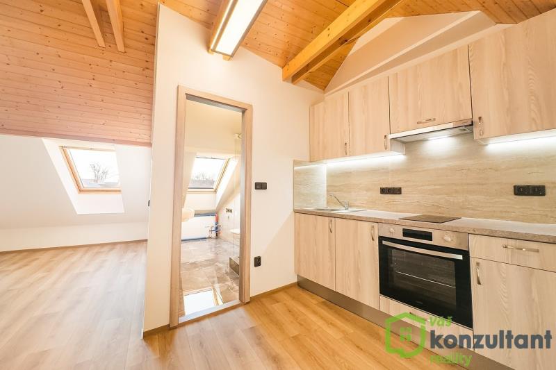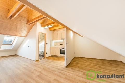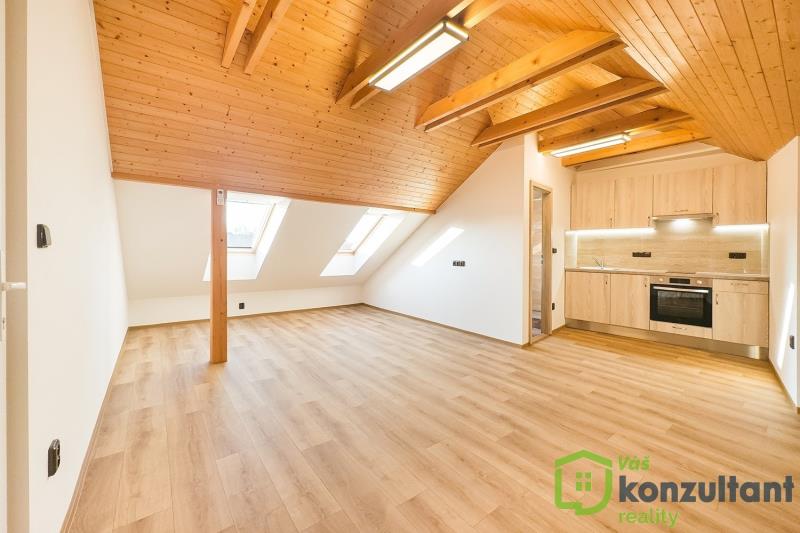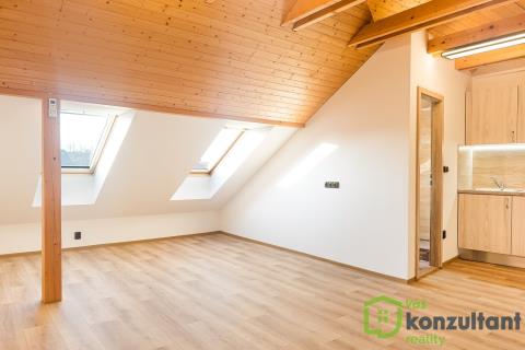 Nabízím k pronájmu podkrovní byt o dispozici 1+kk. Byt má rozměr přibližně 34 m2. Byt je přestaven z bývalé tělocvičny a je úplně nový. Jako nájemníci budete úplně první. V bytě je klimatizace, která se rovněž využívá k vytápění. V přízemí domu je možnost využít i skladovací prostor pod schody, např. na kola, kočárky apod. Okolí nabízí dobrou občanskou vybavenost. Rovněž dopravní dostupnost je výborná. Byt je ihned k dispozici. Případné přeplatky či nedoplatky za platby za energie jsou zúčtovatelné. Pro více informací či sjednání prohlídky mě neváhejte kontaktovat.
