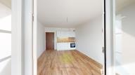 Co se týče samotného bytu, jeho jižní orientace zajišťuje dostatek světla v obývacím pokoji s kuchyňským koutem s přístupem na prostornou lodžii. Navíc, byt disponuje moderním zázemím včetně zádveří, koupelny s WC a šatny. Energetická účinnost bytu je zařazena do třídy B, což značí vysokou úspornost. Na výbavě jsme nešetřili – kvalitní vinylové podlahy, podlahové topení ve vybraných místnostech jsou samozřejmostí. Lednice není součástí.