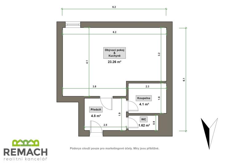 K pronájmu, Byt 1+1, 32 m2 Zlechov