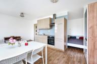 Pronájem prostorného, výborně dispozičně řešeného bytu, o dispozici 1+kk, umístěného v 2. nadzemním podlaží velice dobře udržovaného panelového domu, v klidné části Prahy 8 Čimicích. K bytu náleží sklep. Bezproblémové parkování před domem. Zúčtovatelné oplatky 4.000, Kč měsíčně/ 1 osoba ( elektřina a internet na nájemce). Dispozice a vybavení: Vstupní chodba s šatní skříní a zrcadlem, koupelna se sprchovým koutem, toaletou, pračkou a koupelnovou skříňkou se zrcadlem, obývací pokoj s kuchyňskou linkou, šatní skříní, skříňkou na nádobí, jídelním stolem se čtyřmi židlemi a odděleným lůžkovým prostorem s dvojlůžkem ( bez matrace) . Kuchyňská linka je vybavena troubou, varnou deskou, digestoří a ledničkou. Občanská vybavenost: Základní a mateřská škola 300m od domu, dětské, fitness a sportovní hřiště přímo před domem, potraviny Žabka 400m od domu, pošta, lékař, lékárna v docházkové vzdálenosti. Nákupní centrum Odra 5 minut jízdy MHD, supermarket Lidl a Albert 3 minuty jízdy autem. Zastávka MHD 3 minuty chůze od domu, na metru C Kobylisy jste za 9 minut jízdy autobusem, v centru Prahy za 25 minut jízdy MHD. K nastěhování od 1.5.2026