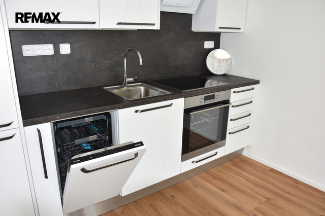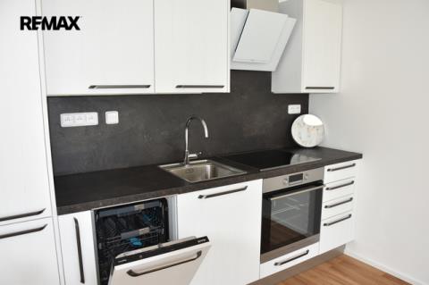 Nabízíme k dlouhodobému pronájmu bytovou jednotku o dispozici 1+kk s balkónem, částečně vybavená i s garážovým stáním za poplatek měsíční v suterénu pod bytovým domem (vyhrazené místo 46). Bytová jednotka se nachází ve 4.NP s výtahem z 5.NP. Plocha bytové jednotky činí 32,2m2, balkón 3,5 m2, který je vybaven 2 židlemi a stolečkem. V bytě se nachází nová kuchyňská linka na míru od Oresi, myčka nádobí, odsavač, lednice vestavná, indukční varná deska, trouba a myčka nádobí. Do bytu budou udělány stínící žaluzie.