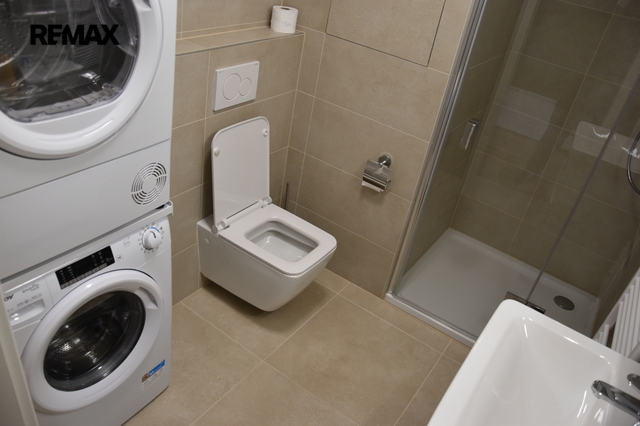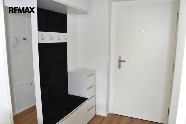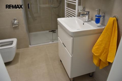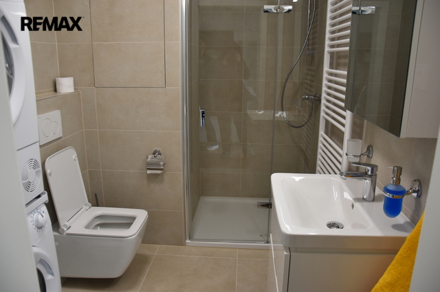 V předsíni se nachází vestavný věšák s botníkem a posezením. V bytě je podlahové vytápění a klimatizační jednotka. Koupelna se sprchovým koutem, dále se zde nachází umyvadlová skříňka, zrcadlo a sušička s pračkou zn . Candy. K bytu přináleží parkovací místo č. 46, které se nachází v suterénu, parkování obstaráno na dálkově ovladatelná vrata (cena 1500 Kč/měsíc). K bytu přináleží sklepní kóje. Bytová jednotka je ihned k nastěhování, nájemní smlouva na rok s možností prodloužení, pokud bude v pořádku paltební morálka. Nájem činí 13000 Kč plus šlužby ve výši 3000 Kč (zůčtovatelné, dle spotřeby skutečné ) a parkovací stání 1500 Kč měsíčně. Kauce ve výši jednoho měsíčního nájmu a služeb (18000 Kč) . Vhodné pro pracující pár max 2 lidi. Více info v RK, prohlídky možné po domluvě u makléřky jsou klíče, takže kdykoliv po domluvě. Více v RK. V nedaleké blízkosti obchod Kaufland, obchody ostatní, služby, nachází se v blízkosti centra, velmi dobrá infrastruktura, dobrá lokalita, v blízkosti park.