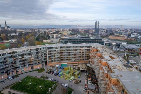 Nabízíme pronájem moderního bytu 1+kk 32,85m2 + lodžie 5,7m2 ve 4.NP novostavby přímo v centru města, na ulici Wittgensteinova, Olomouc.