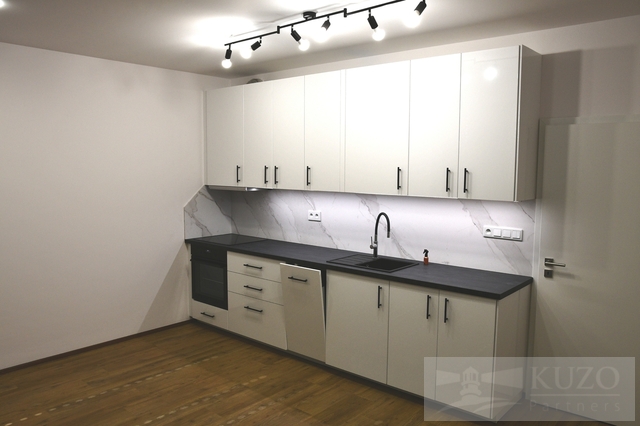 Byt je ideální pro jednoho, disponuje prostornou předsíní, která poskytuje dostatek prostoru pro uskladnění věcí, či velkou šatní skříň. Obytný pokoj je zařízen velkou a kuchyňskou linkou s naddimenzovanými skříňkami, moderními spotřebiči, včetně myčky, pečící trouby, indukční varné desky a digestoře, což ocení každý milovník vaření.