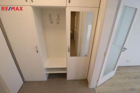 Hlavní obytná místnost se zastřešeným balkónem a na míru řešenou kuchyňskou linkou (s vestavěnými elektrospotřebiči – horkovzdušnou troubou, mikrovlnnou troubou, digestoří, sklokeramickou varnou deskou, vestavěnou lednicí a samostatným mrazákem, osvětlením pracovní desky) poskytne svému novému uživateli vše potřebné - doplněny budou garnyže nad okny + záclona, pod umyvadlová skříňka a koupelnové zrcadlo + varná konvice. Další vybavení bytu je na nájemci a jeho představě (po domluvě lze případně dokoupit pračku/sušičku, i postel).