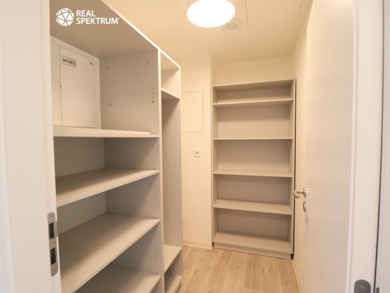 Vybavení: kuchyňská linka vč. spotřebičů (lednice, myčka, mikrovlnná trouba, digestoř, varná deska, trouba), vybavení koupelny a WC (připojení na pračku), bezpečnostní dveře, fan-coil, rekuperace, předokenní elektrické rolety.