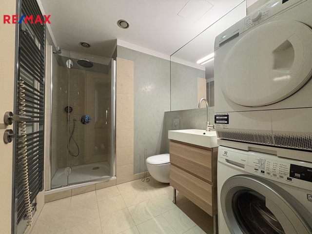 Nabídka pronájmu moderního, šikovně řešeného bytu 1+kk (32 m2) s terasou (10 m2), který je situovaný v atraktivní lokalitě Pražského Karlína (ul. Rohanské nábřeží). Byt se nachází ve 4.NP rezidenčního komplexu River Diamond s 24 hod. recepcí a ostrahou. Součástí pronájmu bytu je zděný sklep (2 m2) a garážové stání. Interiér bytu je tvořen předsíní s šatní skříní, dále pak prostorným obývacím pokojem se vstupem na terasu, s bočním výklenkem pro možnost umístění postele a s moderní kuchyňskou linkou s vestavěnými spotřebiči (sklokeramická varná deska, elektrická trouba, mikrovlnná trouba, digestoř, lednice s mrazíkem, myčka nádobí) a velkou koupelnou se sprchovým koutem, pračkou a sušičkou. Podlahy jsou tvořeny kombinací masívní dřevěné podlahy (pokoj, předsíň) a moderní dlažby (koupelna). Byt je opatřen bezpečnostními vstupními dveřmi. Topení je ústřední dálkové + v bytě je klimatizace. Západní orientace navíc dodává bytu příjemné denní prosvětlení a dostatek sluníčka. Směřování a výhled bytu do parkového vnitrobloku poskytuje bytu klid a ticho. V rezidenčním komplexu dále najdete společnou zahradu, kavárnu a restaurace. Okolí pak poskytuje veškerou občanskou vybavenost (supermarket, restaurace, škola, školka, lékař, …) a řadu možností pro sportovní a odpočinkové aktivity. Byt je ihned k dispozici. Pro více informací kontaktujte makléře nabídky. Pronajímající si vyhrazuje právo vybrat nájemce na základě jím zvolených kritérií.