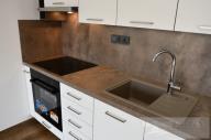 Kuchyňská část bytu je plně vybavená moderními elektrospotřebiči, včetně elektrické varné desky, pečící trouby, digestoře, myčky a ledničky s mrazničkou, což jistě potěší každého milovníka vaření. Velkorysá lodžie nabízí dostatek prostoru pro posezení a užívání si slunečných chvil, zatímco velká okna propouštějí do interiéru dostatek denního světla.