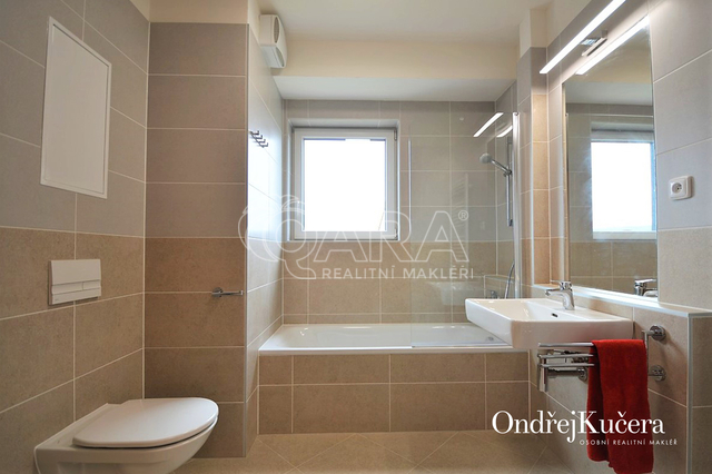 Prostorný a slunný byt 1+kk s terasou, celkovou výměrou 44 m2 a s garážovým stáním v domě s výtahem v ulici Drnovská 1167, Praha 6 - Ruzyně. Jedná se o projekt Byty u Šárky. Bezbariérový byt se nachází se ve třetím podlaží s jihozápadní orientací a otevřeným výhledem. Je prakticky řešený a částečně vybavený tak, aby splňoval veškeré potřeby pro komfortní bydlení. Kuchyňská linka včetně všech kvalitních spotřebičů – lednice s mrazákem, myčka, elektrická a mikrovlnná trouba, indukční deska, odsávací digestoř. V předsíni jsou úložné prostory formou zrcadlových vestavěných skříní. K tomu je samostatná komora s policovým systémem. V pokoji je kuchyňská linka a vstup na krytou terasu s výměrou 8,3 m2. V koupelně s oknem je vana se sprchovou zástěnou, toaleta a příprava na pračku. Podlaha v místnostech je plovoucí a dlažba v koupelně. Okna jsou plastová s izolačním trojsklem. V pokoji je rekuperace a nad okny garnýže. Vstupní bezpečnostní dveře a interiérové dveře od Sapeli. K dispozici je kolárna a kočárkárna. Skvělá dopravní dostupnost autem i MHD. Autobusová zastávka Dlouhá míle je minutu chůzí od domu. Na zastávku metra „A“ a také na vlakovou stanici Nádraží Veleslavín za dalších deset minut jízdy autobusem. Případně na tramvajovou zastávku Vozovna Vokovice za šest minut jízdy. Skvělé spojení autem na Pražský okruh a na letiště. Vše pro každodenní potřebu je v dostupné vzdálenosti. Přímo v areálu je sportovní hřiště s venkovní posilovnou. Přírodní rezervace Divoká Šárka s vodní nádrží Džbán do deseti minut chůzí od domu. Obchodní centrum Ruzyně dvě zastávky autobusem. Příjemné bydlení od seriózního majitele se zájmem dlouhodobého pronájmu za 19.000 Kč plus poplatky ve výši 4.200 Kč a elektřina, která se přepisuje na nájemníka. Byt je připravený k nastěhování od 1.2.2026. Pro bližší informace jsem Vám k dispozici. Ondřej Kučera osobní realitní makléř