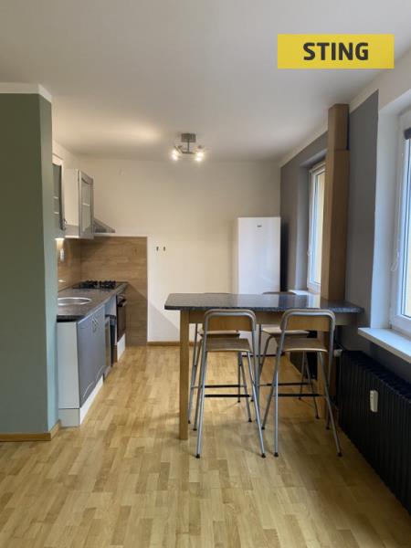 Exkluzivně nabízíme podnájem částečně vybaveného družstevního bytu 1+KK o podlahové ploše 45 m2 v Kopřivnici na Štramberské ulici. Tento byt se nachází ve 2. podlaží šestipodlažního panelového domu po revitalizaci. Plastová okna bytu jsou orientovaná na jihovýchod. Byt je velice teplý a útulný. Má vyzděné jádro, v koupelně je rohová vana, umyvadlo a WC. Předsíň je vybavena velkou vestavěnou skříní a botníkem. Vedle hlavního pokoje je velice praktická a prostorná šatna s policemi a věšáky. Součástí vybavení kuchyňského koutu je vestavěná elektrická trouba, plynový varný panel, komínová digestoř a lednice s mrazničkou. K bytu patří sklepní kóje o velikosti cca 3 m2. Nastěhování je možné ihned po dohodě. Měsíční nájemné činí 11.600 Kč bez záloh na elektřinu a plyn, které jsou 1.300 Kč. V měsíčním nájemném jsou zahrnuty veškeré platby bytovému družstvu. Dále je nutno počítat s vratnou kaucí ve výši 2 měsíčních nájmů, s provizí RK ve výši 12.100,- Kč a s poplatkem bytovému družstvu ve výši 4.800 Kč ročně. Těším se na Vás na prohlídce tohoto hezkého bytu.