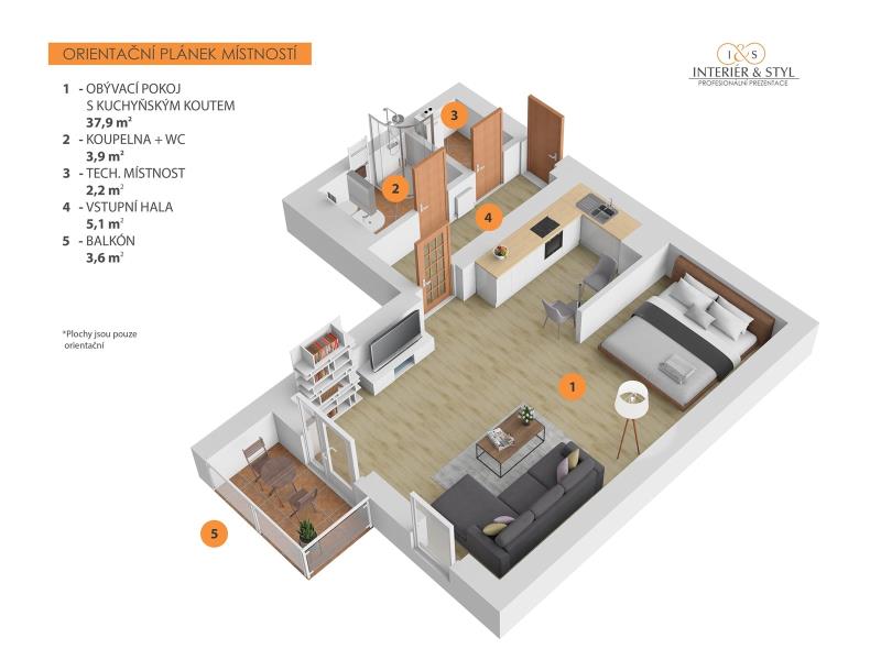 K pronájmu, Byt 1+kk, 52 m2 Plzeňská