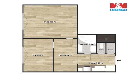 K pronájmu, Byt 3+kk, 53 m2 Českolipská