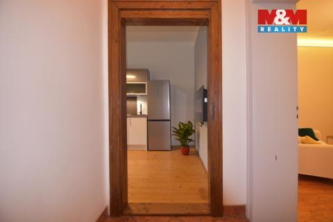 Do Nového roku v Novém bytě. Od 1.1.2026 nabízíme pronájem bytu po rekonstrukci v centru Ústí n. Labem. Byt se nachází v opraveném městském domě přímo naproti UJEP. V bytě je praktická předsíň, ze které je vstup do koupelny s oddělenou toaletou, kuchyně s jídelním stolem a velkého obývacího pokoje. Do ložnice projdete z obývacího pokoje. Místnosti jsou zařízené nábytkem, jak vidíte na fotografiích, navíc je zde pračka, sušička, šatní skříň a botník. Celý byt je světlý díky vysokým oknům a příjemnou atmosféru vytváří vlastní zařízení a bytové doplňky. V domě se topí plynem, v kuchyni je navíc závěsný elektrický krb. Kuchyň je kompletně zařízená včetně základního nádobí. V bytě se nekouří (ani e-cigarety), domácí zvíře je možné po dohodě. Velikostí je byt vhodný pro 2 osoby. Měsíční nájem je 12.000,- Kč + 800,- Kč/ osoba (voda, pojistka), smlouvu na plyn a el. energii si zájemce převede na sebe. Vratná kauce činí 24.000,- Kč a poplatek RK je 12.000,- Kč. Zavolejte si o termín prohlídky.
