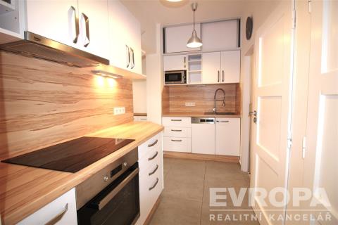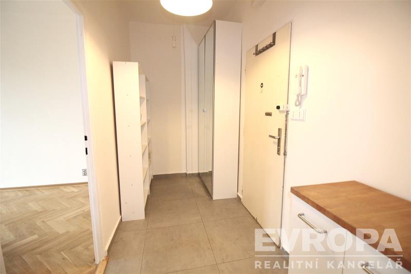 Nabízíme k pronájmu kompletně zrekonstruovaný byt dispozice 2+1, plocha 42m2, nachází se v 5. nadzemním podlaží. Ve vstupní místnosti předsíni je zároveň prostor pro kompletně zařízenou funkční kuchyňskou linku, která je vybavená skl. deskou, el. troubou, mikrovlnou troubou a myčkou nádobí. Tato dispozice tak nabízí vstup do dvou samostatných pokojů, prostorného obývacího pokoje s francouzským oknem a rovněž neprůchozí ložnice. Dále koupelna s menší vanou, samostatná toaleta a komora s pračkou. Byt je světlý s výhledem do korun stromů a orientací na slunný západ. V bytě jsou plovoucí podlahy, parkety a dlažba, plastové okna, nové štuky, elektro a vodoinstalce, dálkové vytápění s dobrou regulací vlastních nákladů na spotřebu. Perfektní spojení do centra Prahy, v místě nadstandardní občanská vybavenost, obchody, večerka, restaurace, OC Eden, Tesco, obchody a služby v pěší vzdálenosti, sportoviště, parky a zeleň v okolí. Majitel bytu preferuje nájemce bez domácích zvířat a max. dvě pracující osoby, s čistým trestním rejstříkem a bez exekucí. Volný ihned k nastěhování.