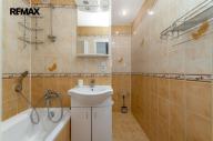 Koupelna je udržovaná, s vanou, umyvadlem a toaletou. Byt je celkově ve velmi dobrém stavu a připravený k okamžitému nastěhování bez nutnosti dalších investic.