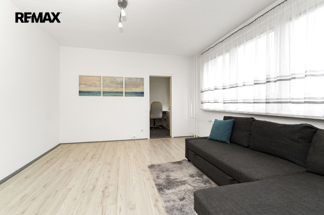 Byt se nachází v 3. nadzemním podlaží z 8 v revitalizovaném panelovém domě s výtahem.