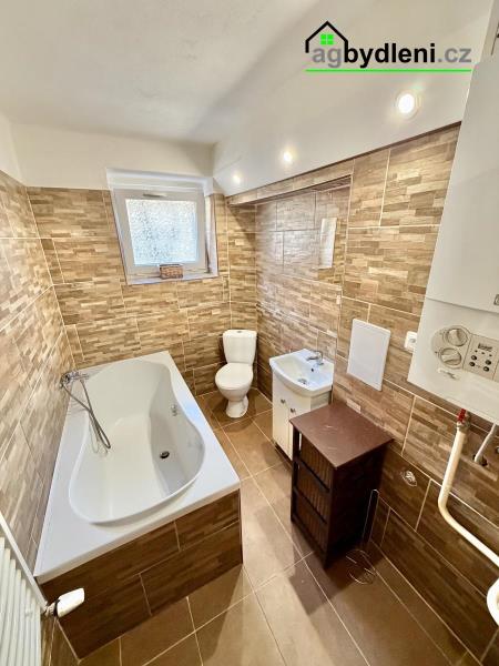 - prostorná koupelna s vanou, WC, umyvadlem a oknem, vytápění a ohřev vody zajišťuje plynový kotel