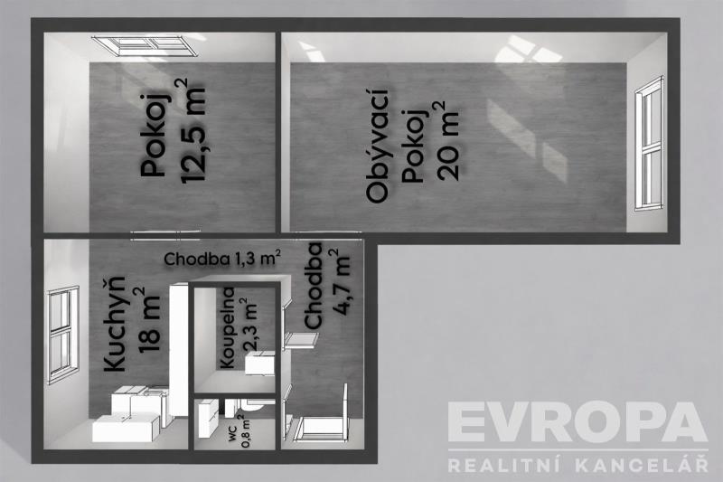 K pronájmu, Byt 2+kk, 63 m2 Olomouc, Topolová