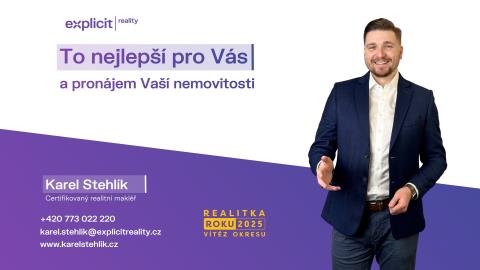 Nabízím Vám k pronájmu světlý a vkusně zrekonstruovaný byt o dispozici 2+1 a celkové ploše 52 m², který se nachází ve zvýšeném 1. NP bytového domu v klidné části Uherského Hradiště. Lokalita nabízí příjemné bydlení v zeleni a zároveň výbornou dostupnost centra města. Základní informace: • klidná lokalita v širším centru města • prosvětlený a vzdušný byt • moderní kuchyňská linka • balkon • sklepní kóje k dispozici Dispozice a vybavení: Byt má praktické dispoziční řešení. Po vstupu se po pravé straně nachází koupelna a samostatné WC, po levé straně vestavná skříň poskytující základní úložný prostor. Z chodby je vstup do všech místností bytu. Kuchyně je vybavena moderní kuchyňskou linkou, plynovým sporákem a lednicí. Vybavení bytu je záměrně střídmé, což dává nájemci volnost zařídit si byt podle vlastního vkusu. Obývací pokoj je prostorný, světlý a nevybavený. Je z něj vstup na balkon, ideální pro klidné posezení. Ložnice nabízí dostatek prostoru pro úložné řešení a je orientována směrem do zeleně, s příjemným večerním sluncem. O tepelný komfort v bytě se starají lokální topná tělesa. Lokalita a dostupnost: Dopravní obslužnost je zde výborná – zastávka MHD je v blízkosti domu a autobusy jezdí velmi často, prakticky každých pár minut do různých částí města. Do centra Uherského Hradiště dojdete pěšky zhruba za 7 minut. V docházkové vzdálenosti se nachází nákupní středisko Morava, školy i nemocnice, což z této lokality dělá velmi pohodlné místo pro každodenní život. Finanční podmínky: • nájemné: 14 000 Kč / měsíc • zálohy na energie: 4 631 Kč / měsíc • vratná kauce: 19 000 Kč • provize RK: 19 000 Kč, včetně DPH • k nastěhování od 1. 3. 2026 Nemovitost si můžete projít už nyní pomocí 3D scanu. Zaujala vás tato nabídka? Ozvěte se kdykoliv, rád vám poskytnu další informace nebo domluvím prohlídku. Karel Stehlík realitní makléř, Explicit Reality Tento byt je nabízen k podnájmu prostřednictvím služby Explicitní Nájemník. Díky službě Explicitní Nájemník získáváte jako nájemce vyšší standard podnájemního bydlení a celkově pohodlnější zážitek. Automaticky máte k dispozici tyto výhody: Pojištění domácnosti a odpovědnosti za škody v běžném životě, včetně non-stop asistenční linky. Zákaznickou podporu každý pracovní den od 8:00 do 17:00 – pro vaše dotazy, požadavky nebo pomoc s nájemní smlouvou. Technickou asistenci – např. zajištění zámečníka, havarijní opravy či řešení jiných technických problémů v bytě. Možnost výměny bytu – kdykoli můžete požádat o změnu na menší, větší nebo v jiné lokalitě z portfolia bytů služby Explicitní Nájemník nebo Explicit Reality. Podnájem přes Explicitního Nájemníka je jednoduchý, bezpečný a bez zbytečných starostí. Vše potřebné máte zajištěno v rámci jednoho spolehlivého servisu.