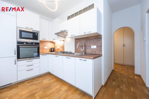 Interiér prošel částečnou rekonstrukcí a působí velmi příjemným a svěžím dojmem. Na podlaze je plovoucí podlaha s dekorem dřeva, v koupelně a na wc dlažba, v pokojích parkety. Plastová okna se žaluziemi propouštějí dostatek denního světla a dotvářejí příjemnou atmosféru po celý den. Kuchyňská linka je zcela nová a vybavená plynovou varnou deskou, elektrickou troubou, mikrovlnnou troubou, digestoří, myčkou a lednicí s mrazákem.