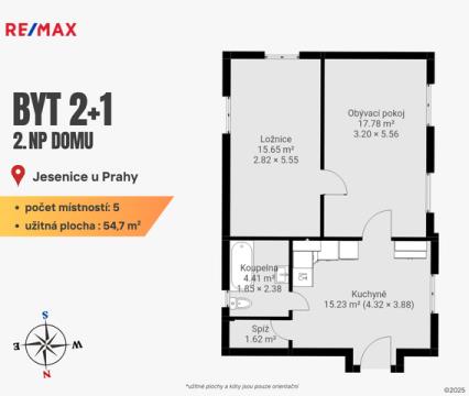Nabízíme k dlouhodobému pronájmu světlý, vzdušný byt o dispozici 2+1 a celkové výměře cca 54 m². Byt se nachází ve 2. nadzemním podlaží menšího bytového domu v klidné, dobře dostupné části Jesenice u Prahy. Interiér prošel kompletní renovací – je nově vymalovaný a vybavený zánovní kuchyňskou linkou. Díky množství oken a orientaci do klidné části lokality působí byt velmi příjemně. Dispozičně byt nabízí prostornou kuchyni, která je pomyslným srdcem bytu. Z ní se vstupuje do koupelny s vanou, samostatného WC, praktické spíže do průchozího obývacího pokoje do ložnice. Byt se pronajímá nezařízený, což umožňuje novým nájemníkům zařídit si interiér dle vlastního vkusu. Měsíční nájemné: 17 000 Kč Zálohy na služby: 4 500 – 5 000 Kč (dle počtu osob) Vratná kauce: 26 000 Kč Provize RK: 1 měsíční nájem + DPH Byt je k dispozici ihned a vhodný pro jednotlivce, pár nebo menší rodinu. Menší domácí mazlíčci jsou vítáni po dohodě. Dům je nekuřácký. Lokalita: Jesenice patří mezi nejžádanější lokality v blízkosti Prahy, nabízí kompletní občanskou vybavenost – školy, školky, obchody, restaurace i služby. V docházkové vzdálenosti (do 100 m) najdete autobusovou zastávku, supermarket i restauraci. Metro C – Opatov je dostupné autem za cca 10 minut, pravidelné autobusové spoje zajišťují přímé spojení s Prahou. V okolí se nachází množství zeleně, lesních cest a sportovišť pro aktivní odpočinek. Energetický štítek PENB je v přípravě. Pro více informací nebo domluvení termínu prohlídky mě prosím kontaktujte – rádi Vám byt osobně představíme.