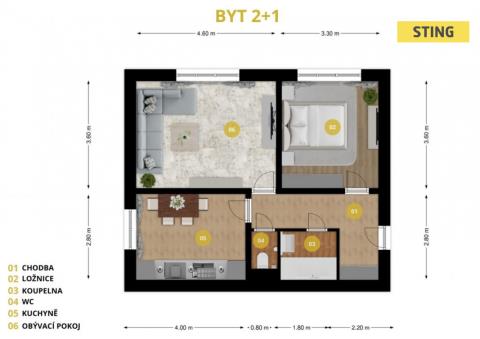 K pronájmu, Byt 2+1, 63 m2 Karlovy Vary, Závodu míru