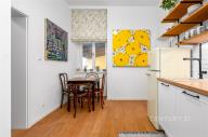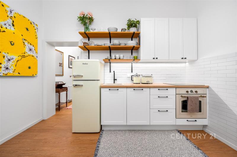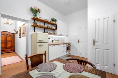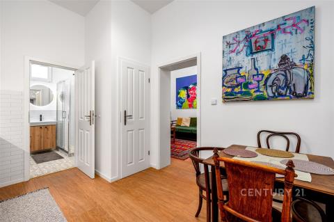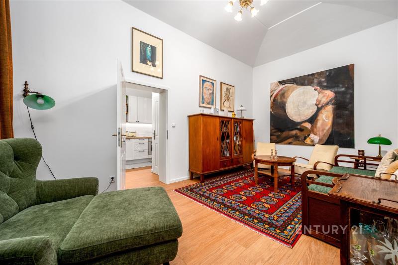 Stylový byt o dispozici 2+1 a výměře 61 m² se nachází v přízemí činžovního domu v Praze 8 Karlíně, jedné z nejžádanějších lokalit v širším centru Prahy. Stanice metra Křižíkova i tramvajové zastávky jsou v docházkové vzdálenosti, díky čemuž je centrum města dostupné během několika minut. Parkování je možné na veřejných venkovních stáních v okolí domu. Zúčtovatelné poplatky ve výši 6 000 Kč měsíčně (včetně elektřiny, bez internetu) + kauce + provize RK. V domě aktuálně probíhá jeho rekonstrukce. Byt zaujme především svým osobitým charakterem, vysokými stropy a příjemnou atmosférou, kterou podtrhují světlé stěny a dřevěné podlahy. Díky promyšlenému uspořádání prostor nabízí byt několik funkčních zón, které vytvářejí komfortní prostředí pro každodenní bydlení. Dominantou bytu je prostorný obývací pokoj, který působí velmi vzdušně a útulně zároveň. Interiér je vkusně zařízen a propojuje historizující dřevěný nábytek s výraznými moderními uměleckými prvky, což dodává bytu jedinečný charakter. Samostatná ložnice je řešena prakticky a nabízí chytré řešení s patrem na spaní a pracovním koutem, díky čemuž je prostor efektivně využit pro odpočinek i práci. Kuchyně je laděna do čistého bílého designu, který je zajímavě doplněn retro spotřebiči a vytváří tak stylový kontrast mezi moderním a dobovým stylem. Karlín patří dlouhodobě mezi nejvyhledávanější lokality v širším centru Prahy. V bezprostředním okolí se nachází široká nabídka kaváren, restaurací, bister i obchodů, které dotvářejí živou a příjemnou atmosféru této čtvrti. V docházkové vzdálenosti jsou supermarkety, menší obchody, lékařské ordinace, lékárny, pošta i banky. Nechybí ani fitness centra a služby, potřebné pro pohodlný každodenní život. Pro odpočinek a volný čas jsou v blízkosti parky a zelené plochy, například Karlínské náměstí, nebo cyklostezka podél Vltavy vhodná pro sport i procházky. K nastěhování od 1.4.2026