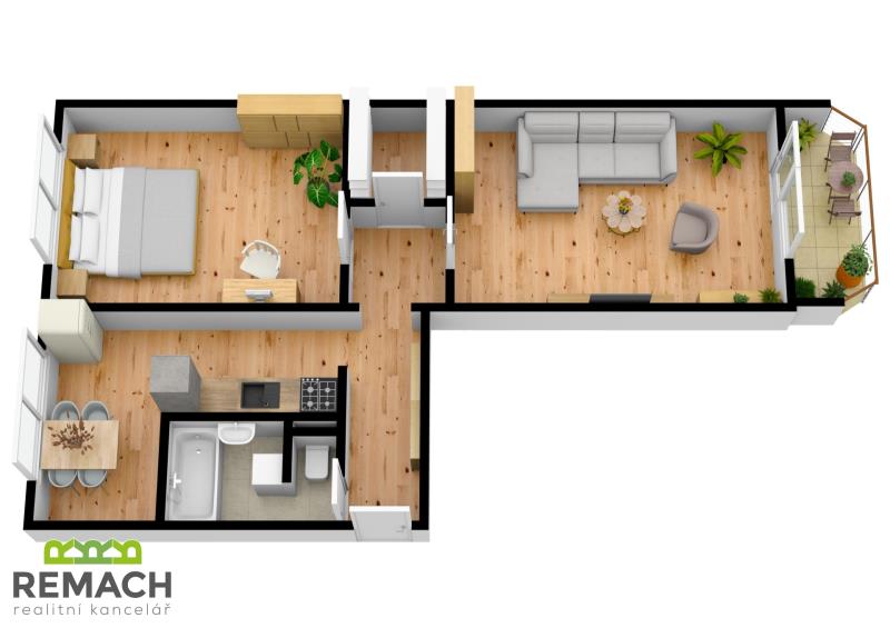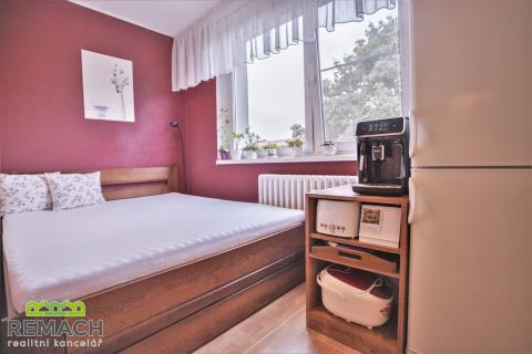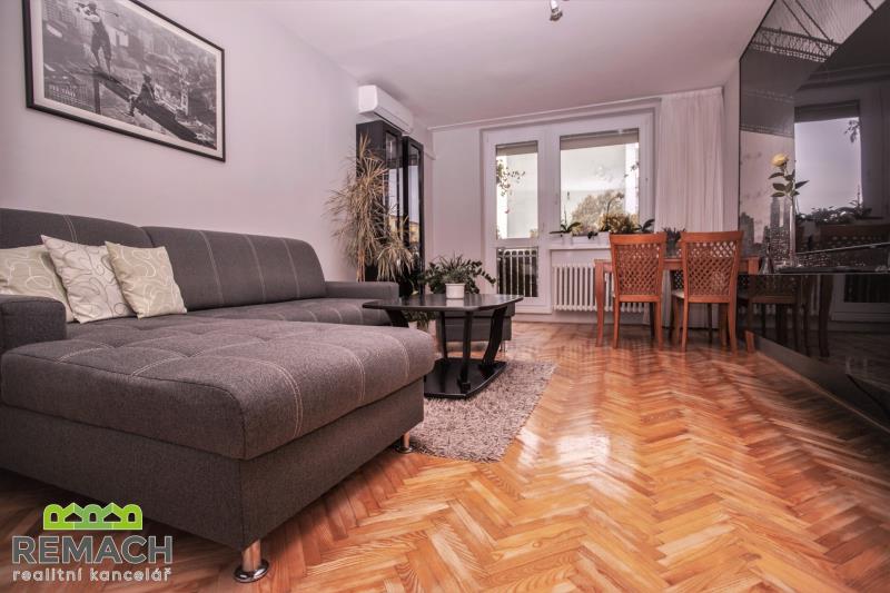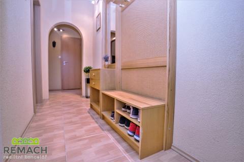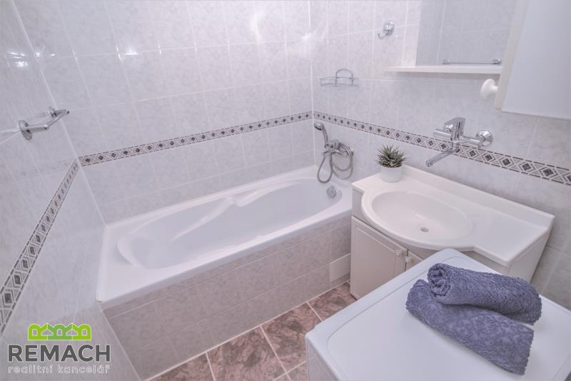 Kompletně zrekonstruovaný byt o dispozici 2+1 a rozloze 61 m2, s prostornou lodžií o rozloze 6 m2, nacházející se v posledním patře kompletně revitalizovaného domu. Byt zůstává kompletně vybaven (vyjma TV a kávovaru). V obývacím pokoji o rozloze 19 m2 je klimatizace a jídelní kout, díky tomu zůstal v bytě další spací prostor. Z obývacího pokoje je vstup na lodžii, která nabízí soukromí s pěkným výhledem. Ložnice má plochu 16 m2, WC je samostatné, odděleno od nové koupelny. Byt je volný ihned.