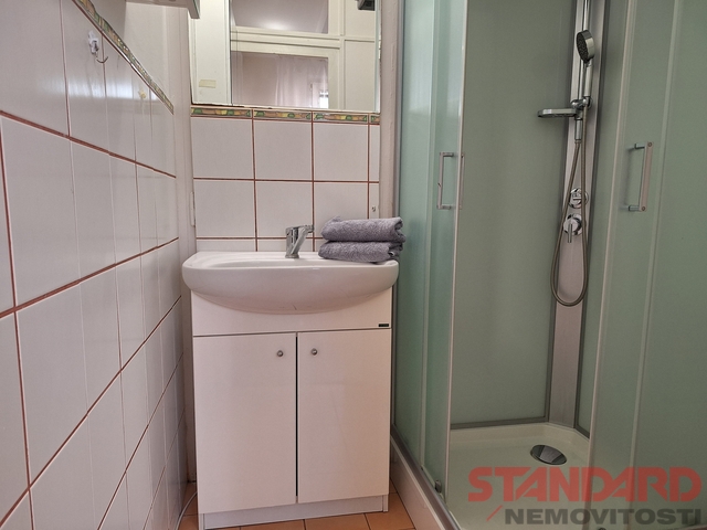 • koupelna se sprchovým koutem, umyvadlovou skříňkou, zrcadlem a přípojkou na pračku
