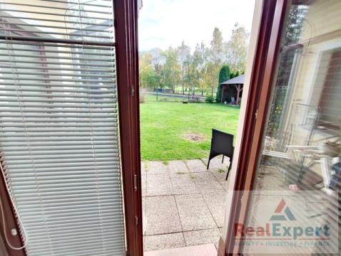 Nabízíme k pronájmu velice hezký byt 2+1, o celkové ploše 79 m2, (byt 64 m2 + 15 m2 terasa), situovaný v klidné lokalitě - ul. Za rybníkem, v obci Jesenice. Byt se sestává z prostorného obývacího pokoje, ložnice, kuchyně vybavené kuchyňkou linkou a vestavnými spotřebiči (lednice s mrazákem, plynový sporák s elektrickou troubou, myčka, mikrovlnná trouba), předsíně a koupelny s vanou a WC. Z bytu je přímý vstup na terasu o ploše 15 m2, která dále navazuje na společnou zahradu bytového domu, která je oplocená a přístupná pouze vlastníkům či nájemcům bytů v objektu. Z terasy je krásný výhled do zeleně a na nově rekultivovaný rybník Pančák. Byt je vybaven osvětlovacími tělesy, podlahovou krytinou (koberce, dlažba), žaluziemi, vestavěnými skříněmi v předsíni, automatickou pračkou a bezpečnostními dveřmi. Topení a ohřev vody řešen vlastním plynovým kotlem. Veškerá občanská vybavenost v místě. Výborné parkování přímo v ulici a spojení do Prahy - cca 20 min. busem na metro Budějovická nebo 10 min. na Opatov. Výborná dostupnost na dálnici D1, D5, Pražský okruh. Byt bude nově vymalován. Nastěhování je možné od března. Zajímavá příležitost - doporučujeme.