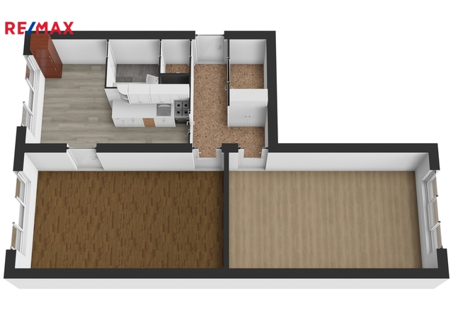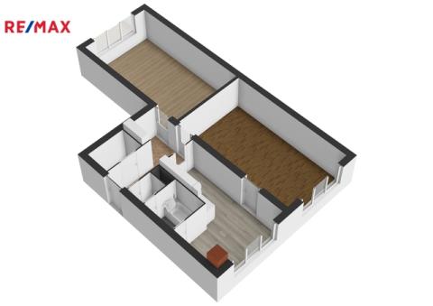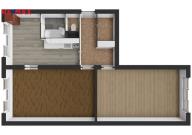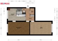 Výměry jednotlivých místností (viz též fotogalerie – „Plánek bytu“): kuchyně 12,3 m², obývací pokoj 20,5 m², pokoj 20,5 m², předsíň 5,7 m², šatna 2 m² koupelna 2,5 m², WC 1 m². K bytu náleží též sklep (1,3 m²).