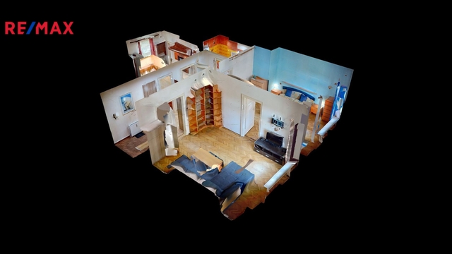 ▪️prostorný obývací pokoj s parketami a knihovnami,